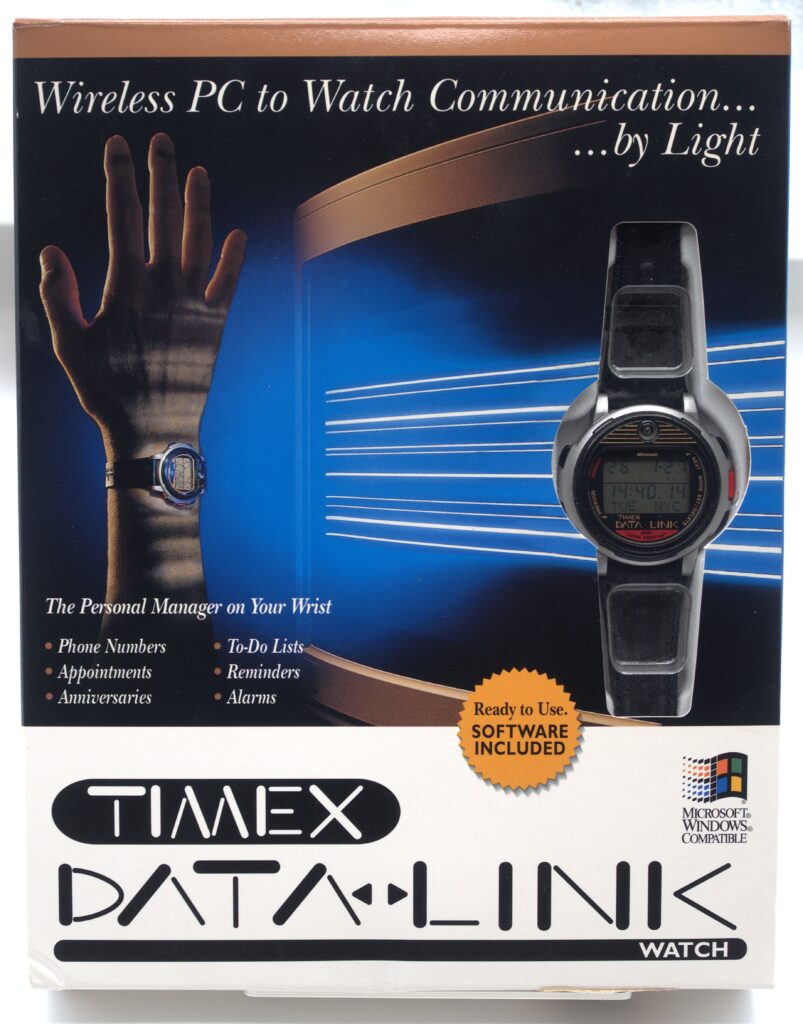 When the Timex Datalink came out, it represented a completely new type of device, a wrist-watch that also acted as a store for important personal information. Timex marketed this in cooperation with Microsoft at an introductory price of 130 USD, and in the box was an offer for Microsoft Schedule+, the new Calendar and PIM app that Microsoft had released for Microsoft Windows 95.