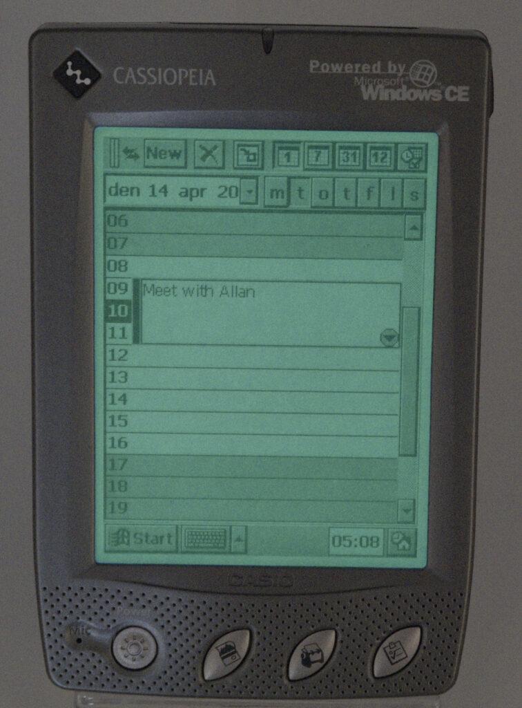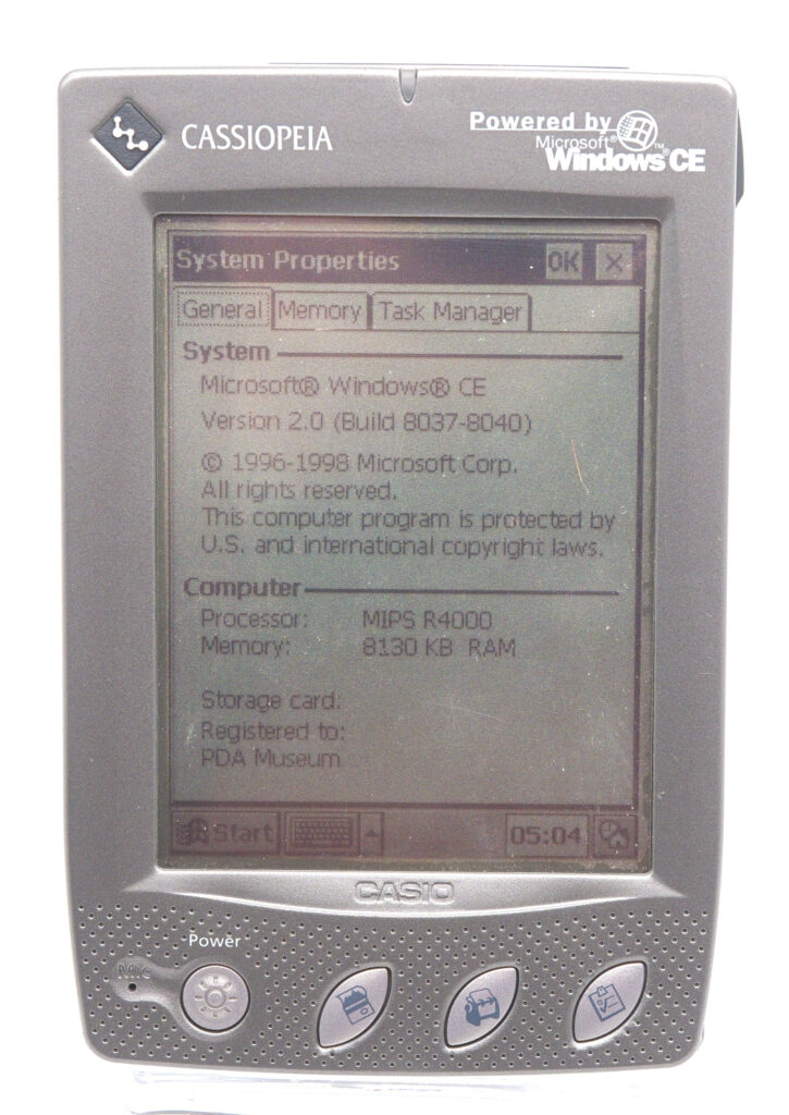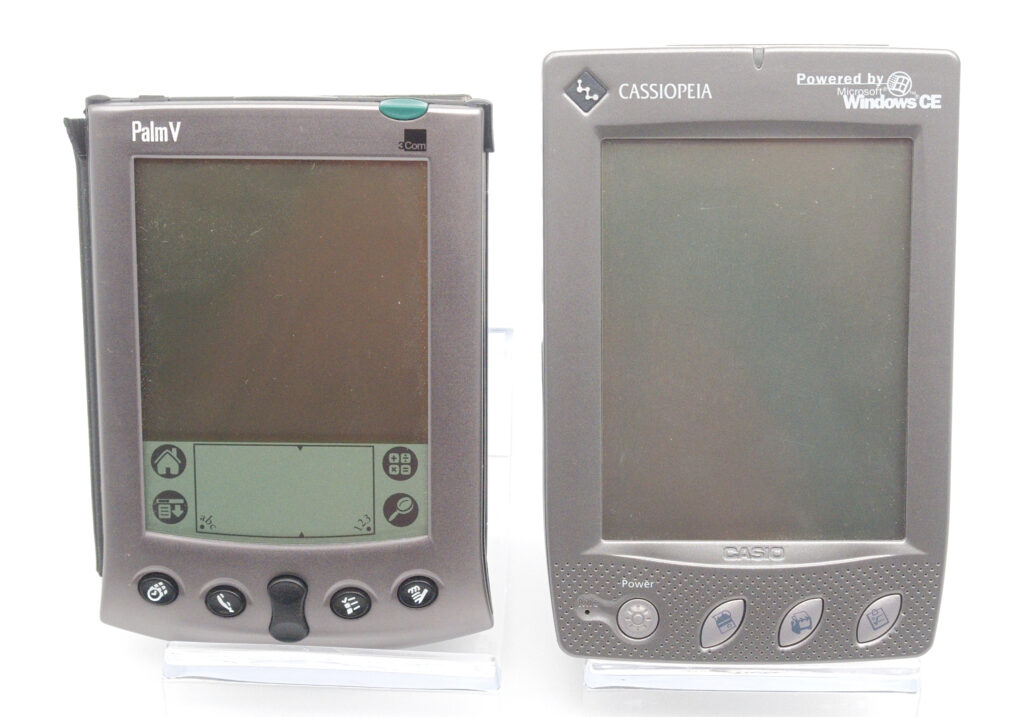 Even something as simple as exchanging electronic business cards highlights the difference: on the Palm, it “just works,” while on the Cassiopeia, it does not. Does that make the Cassiopeia a flop? Not at all. Many users preferred the familiarity of an operating system they already knew—namely Windows 98—rather than learning something completely new. For those users, the real question was not Palm vs. Windows CE, but rather whether to choose a stylus-based device or one with a keyboard. Both types were widely available from multiple manufacturers, all running Windows CE 2.0.