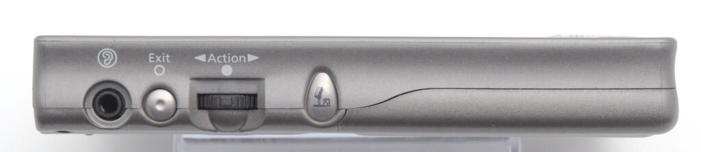 The display is a backlit 240×320 pixel grayscale panel capable of showing four shades of grey. A microphone is located on the front of the device, while a small speaker is placed on the back. Recordings can easily be made using the dedicated button on the left edge of the unit. A CompactFlash slot for memory expansion is located at the top.
