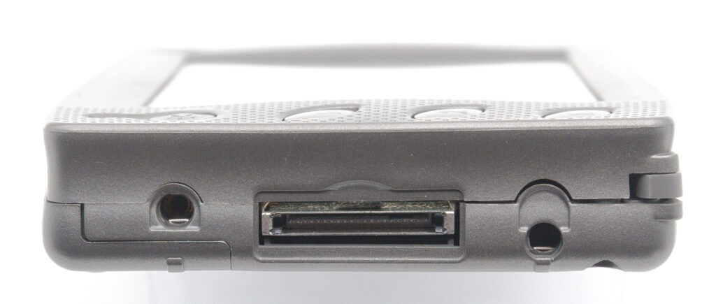 As was common for PDAs of this period, the device features a proprietary serial connector at the bottom, along with two guiding holes that align with pins on the supplied docking station. There is also an infrared port at the top. However, it should be noted that Windows CE 2.0 did not fully implement the OBEX protocols used for exchanging business cards or calendar events. In practice, this means that the infrared capability is primarily useful for emulating a serial connection for ActiveSync rather than for direct file or contact exchange.