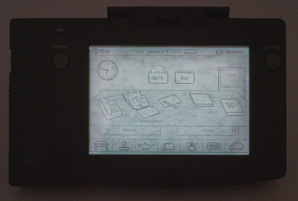 Far from it. General Magic was founded in 1990. The first Magic Cap device, Sony’s Magic Link, was released in 1994, and the DataRover 840 followed a few years later. None of these devices achieved commercial success, and in 2000 General Magic (by then renamed DataRover) ceased operations.