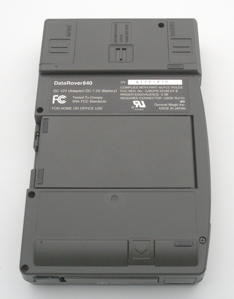 The DataRover840 is an unusual device. It is one of the few PDAs that run the Magic Cap operating system from General Magic. General Magic started as a spin-off from Apple, where Marc Porat had some revolutionary ideas about how mobile computing should work. He realised that a mobile computer would always be less powerful than a stationary one, so instead of trying to work around this limitation, it became part of the computing model: more demanding tasks would be handed off to more capable servers, and the results returned to the mobile device.