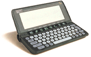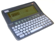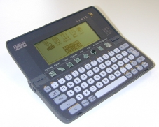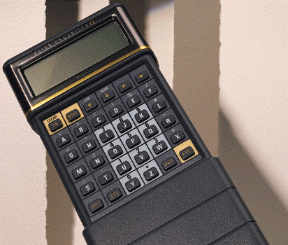 A rectangular case measuring 8 x 14 x 3 cm with an alphabetic key layout, a sturdy protective case, 2 kB RAM, 4 kB ROM containing the applications and an optional 8 KB data pack, which still had to be erased with UV light, that was all. The output appeared on a single-line LCD. However, the battery life was stated as an impressive six months(!) on a single 9V battery.