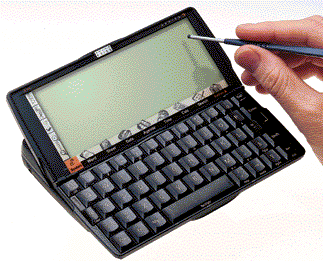 The ingenious clamshell mechanism of the Series 5, which allows one of the smallest full-size keyboards to slide out of the device, the storage of the stylus for the pressure-sensitive screen, and the slots for Compact Flash and backup battery, as well as the interface ports, recorder buttons and speaker, are truly ingeniously integrated into the casing.