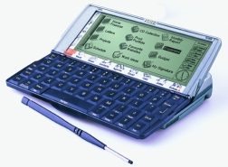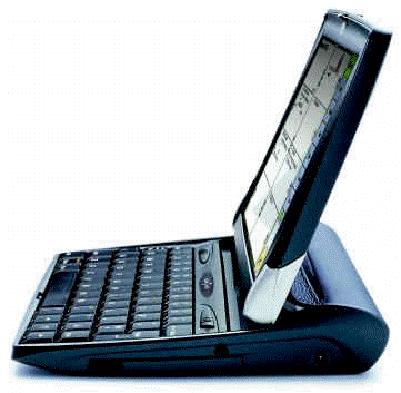 Add to that Bluetooth and GPRS with a headset, and it becomes clear that the PSION ACE is absolute high-end. A mini trackball serves as the input device, and docking station is provided for recharging the batteries. The operating system is Symbian’s EPOC.