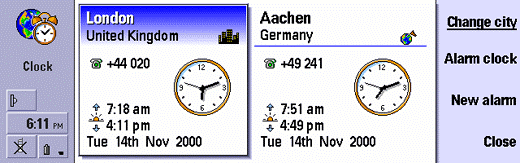 The software is centred around the main ‘Contacts’ application and offers a messaging application for email, SMS and fax. The phone software is provided by the respective handset manufacturer. The browsers support the HTML 3.2 and WAP 1.1 specifications. A calendar, to-do lists, a notepad supporting rich text and images, a calculator, a world clock with alarm, voice memos, a system environment called ‘Launcher’, synchronisation software and the ‘Control Panel’ round off the standard software package.