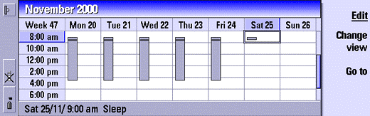 The version upgrade to the Series 3c in 1996 introduced, for the first time, an infrared port (which, unfortunately, was not designed to be IrDA-compatible), a serial port three times as faster serial port (at 57 kbit/s) and, in terms of new software, Notes (Jotter), the File Manager (File) and the invaluable appointment overview in the Agenda.