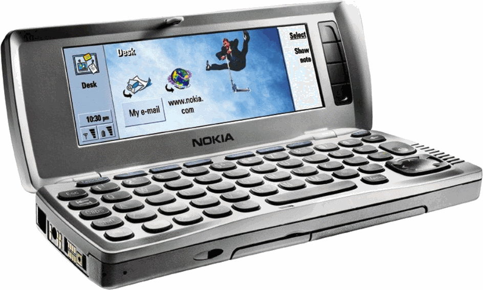 The successor to the well-known GEOS-based Nokia 9110 Communicator now runs on the Symbian v6.0 platform with a manufacturer-specific user interface. Unveiled on 21 November 2000, it has been available since the second quarter of 2001.